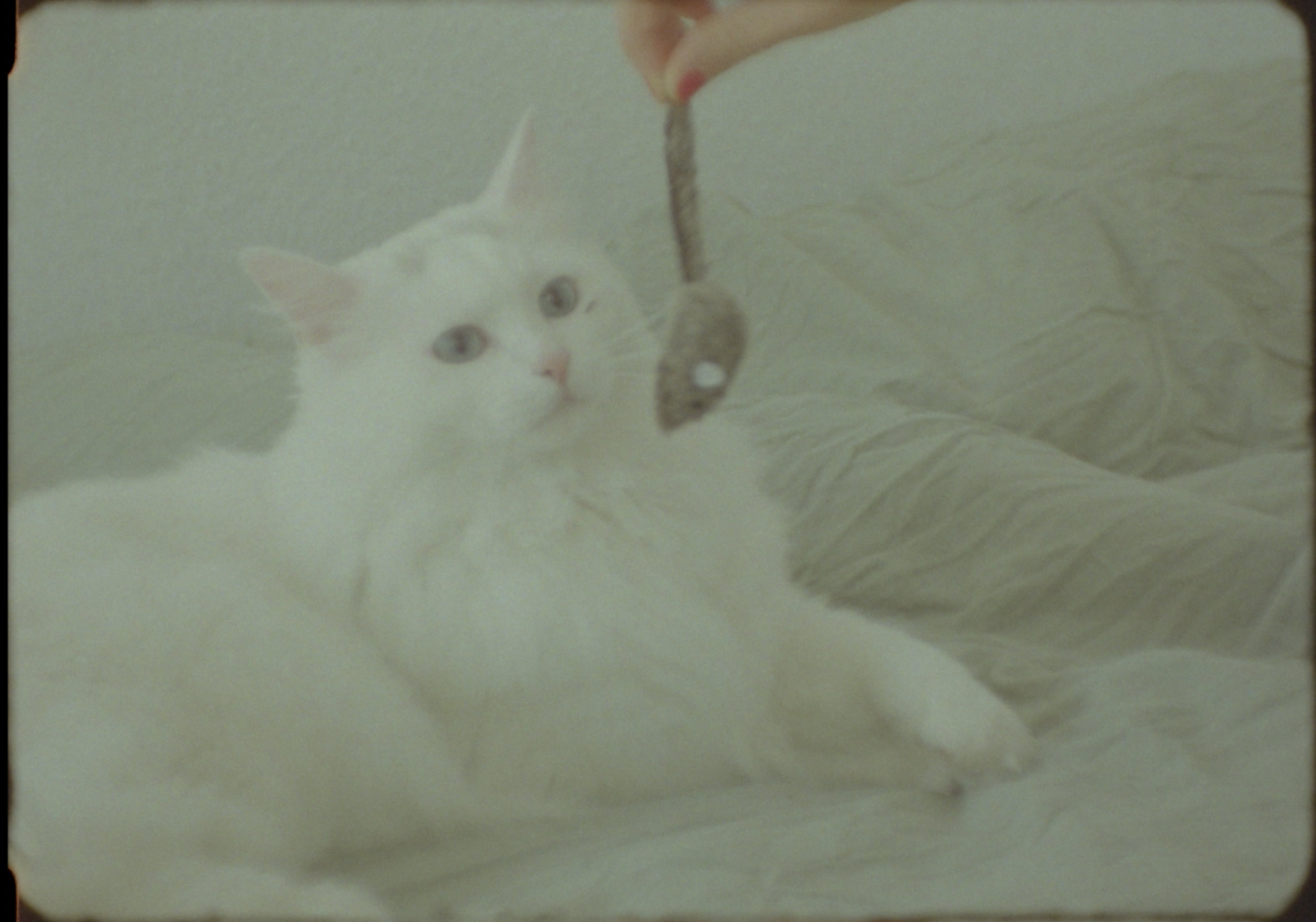 A mixed-media installation featuring a looping 16 mm projection with asynchronous sound. Inspired by toxoplasmosis—often linked to the so-called “cat lady syndrome”—the work explores infection, attraction, and altered perception. Through hand-edited and scratched film, image and sound interact in a continuous loop, shifting sensory experience without relying on words.
